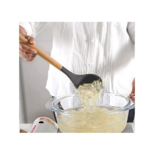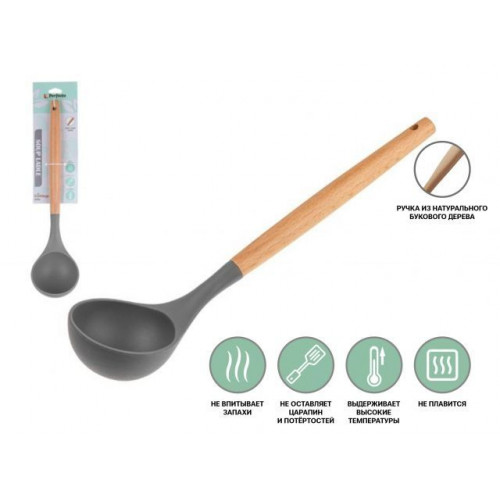 Черпак выполнен из материала, который выдерживает высокие температурные нагрузки и полностью безопасен для здоровья человека. Не повреждает антипригарное покрытие кастрюль и сковородок.