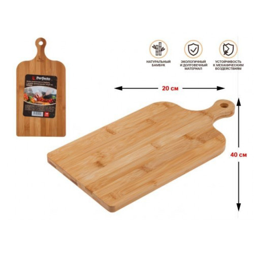Доска разделочная из бамбука с ручкой, прямоугольная, 40х20 см, BAMBOO, PERFECTO LINEA