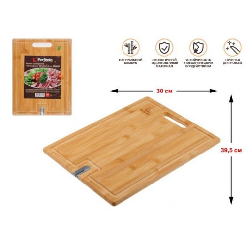 Доска разделочная из бамбука с точилкой для ножей, 39.5х30х1.5 см, BAMBOO, PERFECTO LINEA