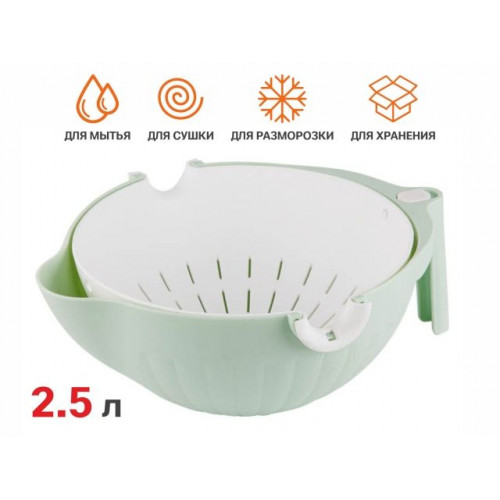 Миска и дуршлаг в одном. Можно использовать и как миску, и как дуршлаг для мытья овощей и фруктов. Приспособление очень удобно в применении. Можно мыть в посудомоечной машине.