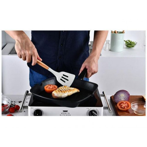 Отчерстия на изделии позволяют стекать излишкам масла. соуса или жидкостей.