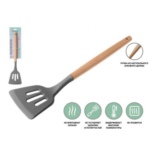 21-326114 Лопатка силиконовая, 32 х 6 см, EcoVillage, серая, PERFECTO LINEA,