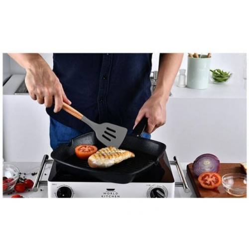 Отчерстия на изделии позволяют стекать излишкам масла. соуса или жидкостей.