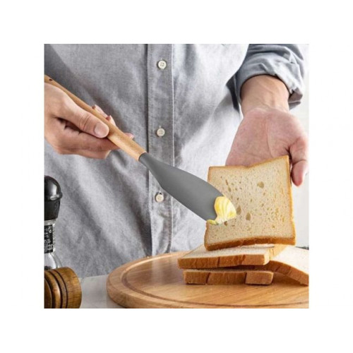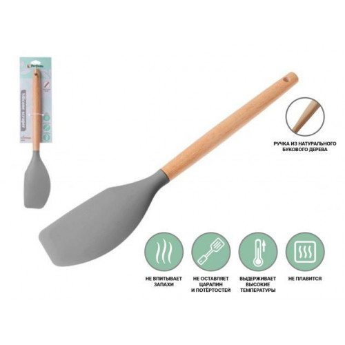 Лопатка силиконовая, 32 х 6 см, EcoVillage, серая, PERFECTO LINEA