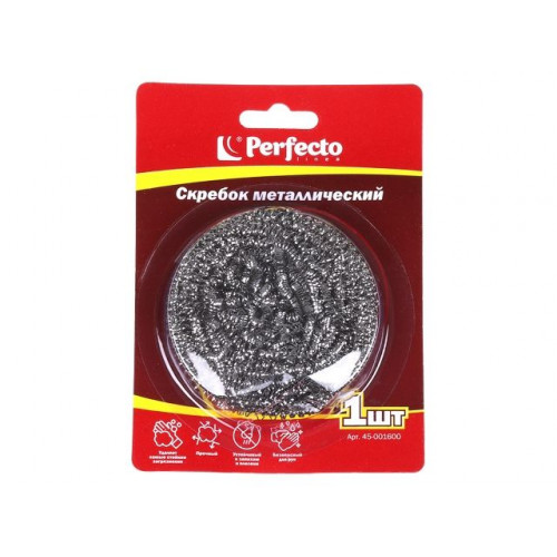 Скребок (губка) металлический 1шт, блистер, PERFECTO LINEA
