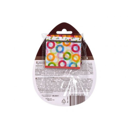 Способ применения: 1. Отварить яйцо и остудить его. 2. Разрезать термопленку на фрагменты по линии рисунка. 3. Поместить яйцо внутрь одного фрагмента и опустить его в кипящую воду на несколько секунд. Держать в воде до того момента, когда пленка плотно обтянет яйцо. 4. Вынуть яйцо и дать ему обсохнуть.