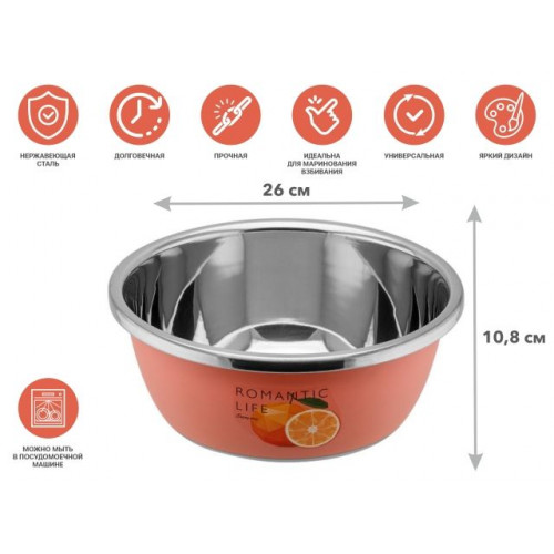 Миска для взбивания из нержавеющей стали, диаметр 26 см, апельсин,серия Romantic life,PERFECTO LINEA