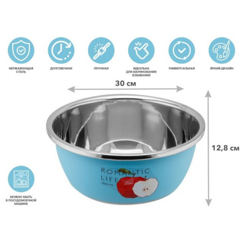 Миска для взбивания из нержавеющей стали, диаметр 30 см, яблоко, серия Romantic life, PERFECTO LINEA