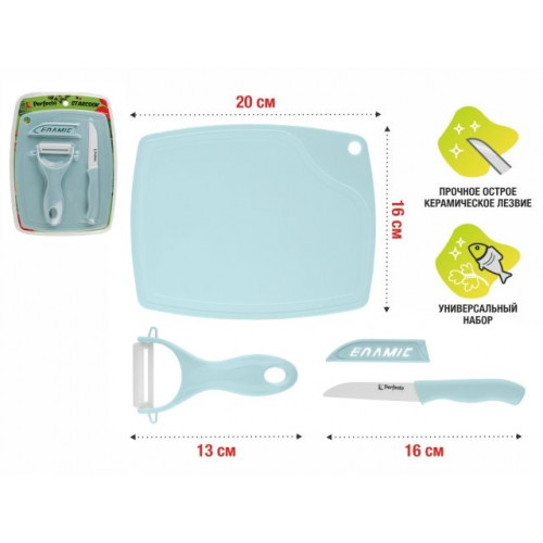 Набор кухонный (нож кух.16см,нож для овощей 13см, доска разделочн.16х20см), STARCOOK, PERFECTO LINEA