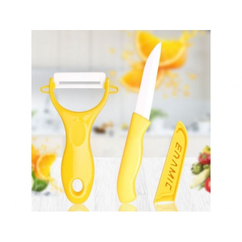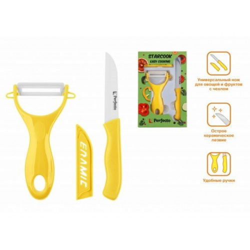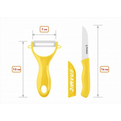 В наборе: нож кухонный, общая длина 16 см, длина лезвия 7 см, нож для чистки 13 см, защиный чехол для ножа.