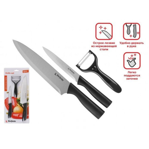 Набор ножей 3 шт. (нож кух.31.5 см, нож кух.22.5 см, нож для овощей 14.5 см), Handy, PERFECTO LINEA