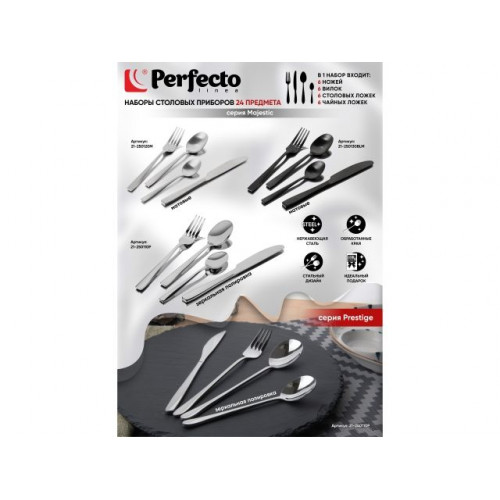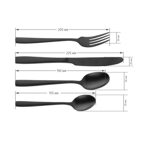 Набор столовых приборов, 24 шт., черный матовый, серия Majestic, PERFECTO LINEA