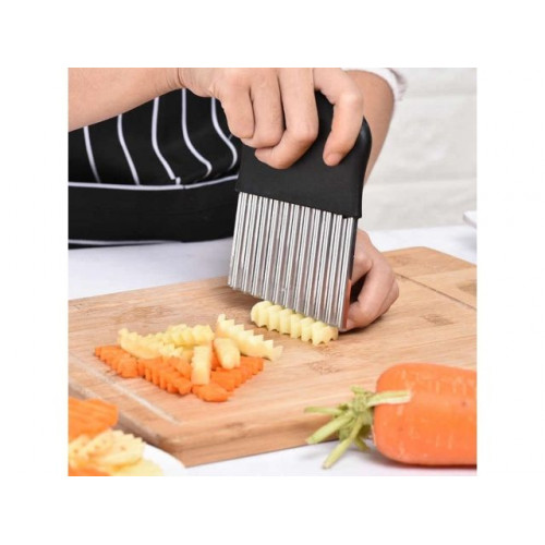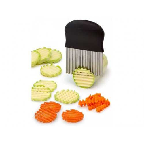 Нож для фигурной резки - инструмент, который превратит обыкновенное блюдо в кулинарный шедевр. Лезвие ножа для фигурной нарезки выполнено из нержавеющей стали и позволяет нарезать рифлеными кусочками картофель для картошки-фри, сыр и ветчину для нарезки, морковь и огурцы для салата, кабачки и баклажаны для гриля. Ручка ножа выполнена из полипропилена и TPR-пластика. Благодаря этому фигурный нож комфортно лежит в руке и не выскальзывает.