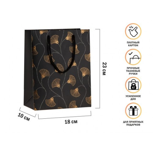 Пакет подарочный с ручками, 23х18х10 см., черный, серия Aurora, PERFECTO LINEA