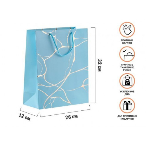 Пакет подарочный с ручками, 32х26х12 см., голубой, серия Amelia, PERFECTO LINEA
