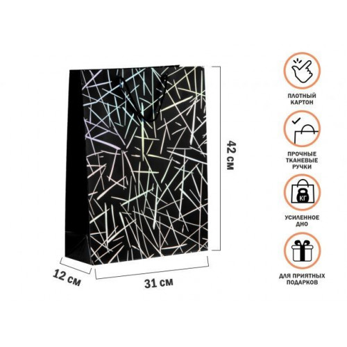 Пакет подарочный с ручками, 42х31х12 см., черный, серия Emma, PERFECTO LINEA