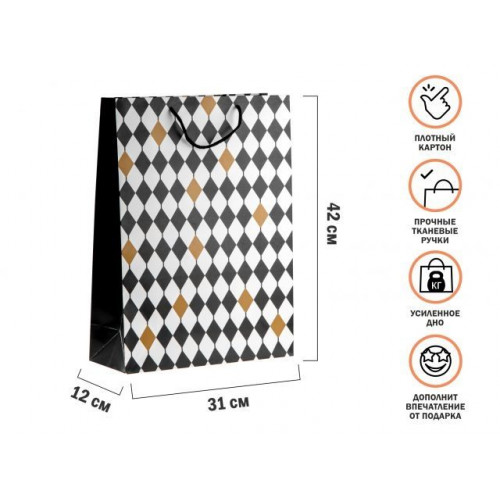 Пакет подарочный с ручками, 42х31х12 см., ромб, серия Liam, PERFECTO LINEA