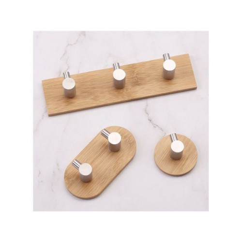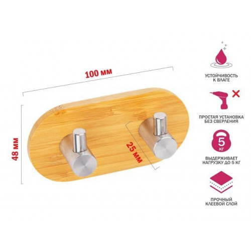 Планка самоклеящаяся 2 крючка VIRGO, нержавеющая сталь/бамбук, карт.уп., PERFECTO LINEA