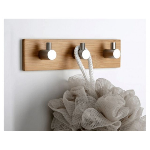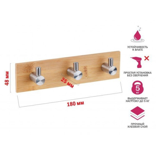 Планка самоклеящаяся 3 крючка PEGASUS, нержавеющая сталь/бамбук, карт.уп., PERFECTO LINEA