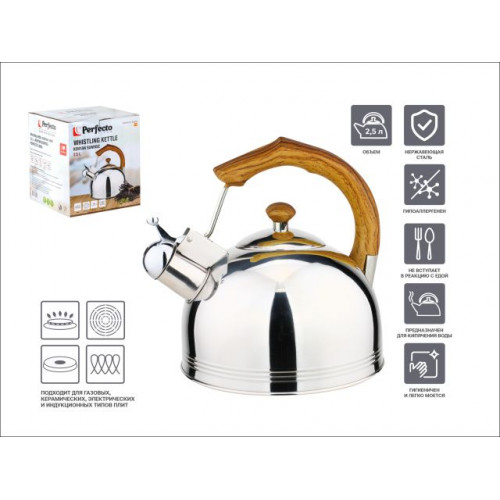 Чайник со свистком, нержавеющая сталь, 2.5 л, Kenyan Sunrise, PERFECTO LINEA