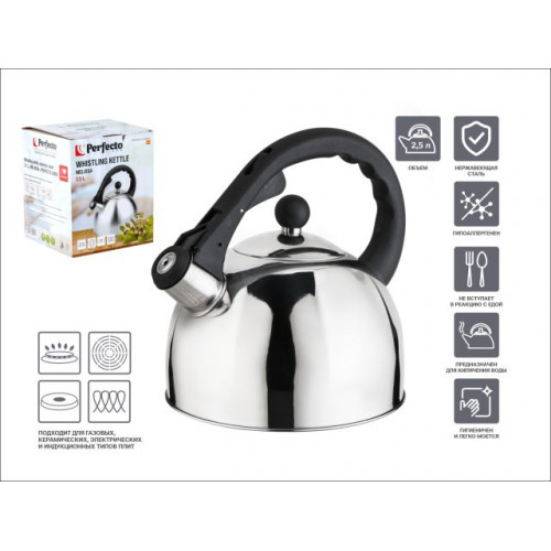 Чайник со свистком, нержавеющая сталь, 2.5 л, Melissa, PERFECTO LINEA