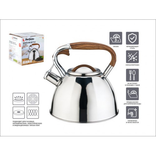 Чайник со свистком, нержавеющая сталь, 3.0 л, Ceylon, PERFECTO LINEA