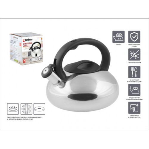 Чайник со свистком, нержавеющая сталь, 3.0 л, серия Ufo, серебристый металлик, PERFECTO LINEA