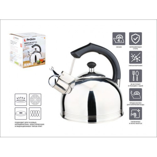 Чайник со свистком, нержавеющая сталь, 4.0 л, Classic Breakfast, PERFECTO LINEA