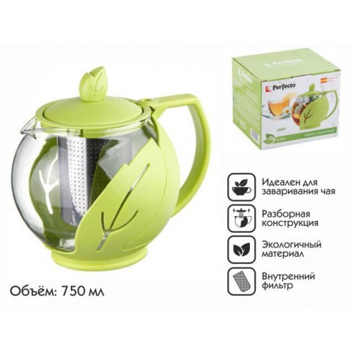 Чайник заварочный, стеклянный, 750 мл, LEAF, PERFECTO LINEA