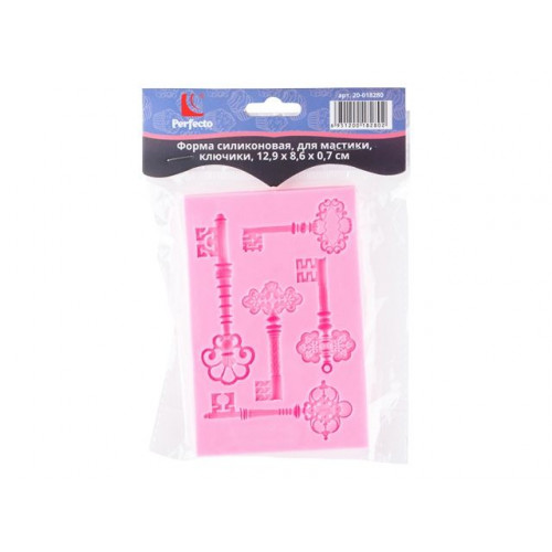 Форма для мастики силиконовая ключики 12,9х8,6х0,7 см PERFECTO LINEA (20-018280) используется в качестве элемента декора для торта или капкейков. Форма сделана из эластичного и высокопрочного силикона. Гибкость материала позволяет без труда извлечь мастику. Форма для мастики является экологически безопасной: не вступает в реакцию с пищей, окружающей средой, не выделяет вредных веществ. Не впитывает запахи от ранее приготовленных продуктов. Легко моется и не занимает много места на кухне. Температурный режим эксплуатации: от -30°С до +230°С.