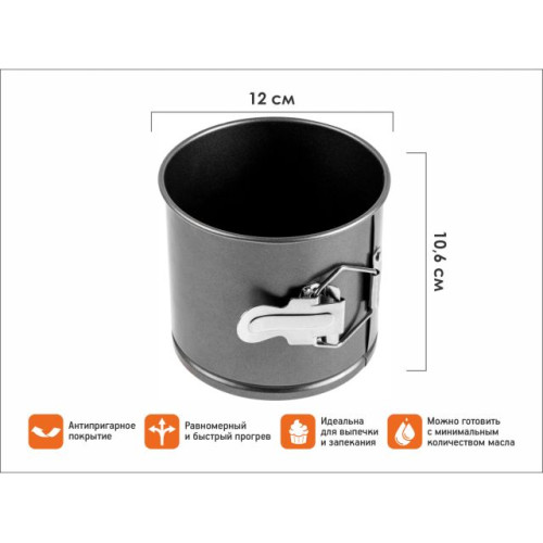 Формы выполнены из углеродистой стали высокого качества с сертифицированным внутренним антипригарным покрытием. Разъемный механизм со съемным дном позволяет с легкостью извлекать выпечку из форм.Во время готовки пища не прилипает, не пригорает, что облегчает готовку.