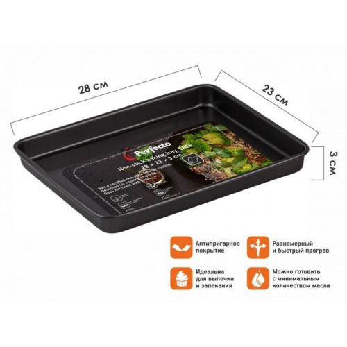 Форма для выпечки, прямоугольная, 28х23х3 см, антипригарное покрытие, CHEF, PERFECTO LINEA