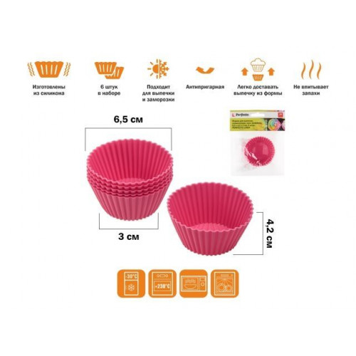 Форма для выпечки, силиконовая, кекс (маффин), 6,5 х 4,2 x 3 см, 6 штук, FRUIT DOVE, PERFECTO LINEA