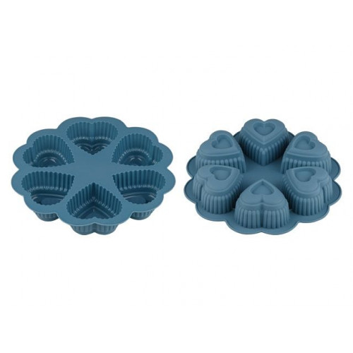 Форма для выпечки, силиконовая, круглая на 6 сердец, 25 х 4.5 см, BLUESTONE, PERFECTO LINEA