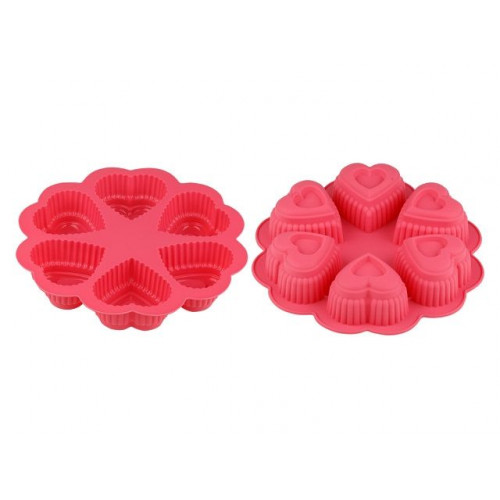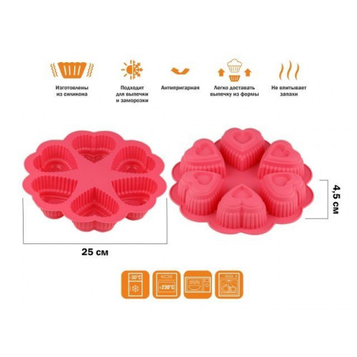 Форма для выпечки, силиконовая, круглая на 6 сердец, 25 х 4.5 см, FRUIT DOVE, PERFECTO LINEA