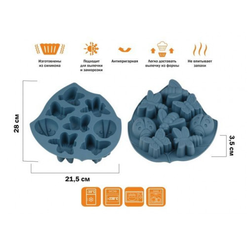 Форма для выпечки, силиконовая, насекомые, 28 х 21.5 х 3.5 см, BLUESTONE, PERFECTO LINEA