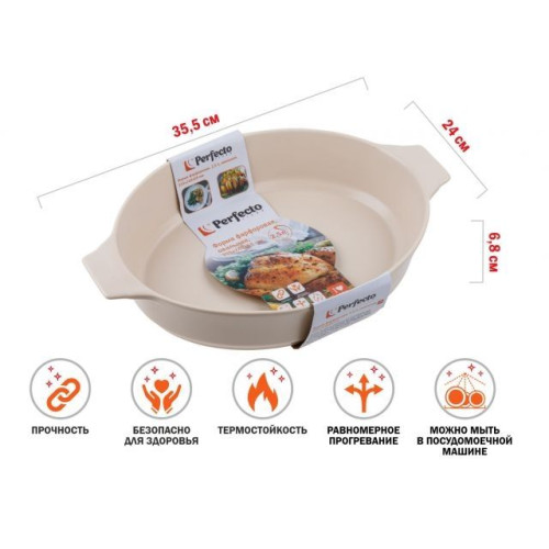 Форма фарфоровая, 2.5 л, овальная, 355х240х68 мм, PERFECTO LINEA