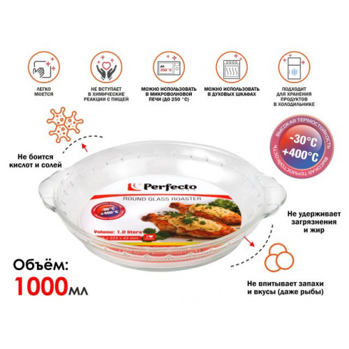 Форма из жаропрочного стекла, 1.0 л, круглая, 255х223х43 мм, PERFECTO LINEA
