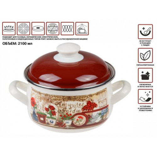 Кастрюля стальная эмалированная, 2.1 л, серия Антик, PERFECTO LINEA