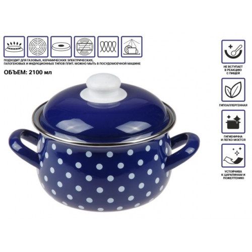 Кастрюля стальная эмалированная, 2.1 л, серия Горошек, PERFECTO LINEA