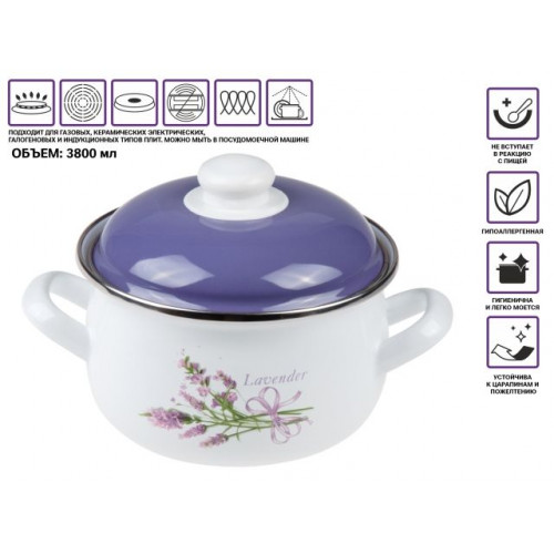 Кастрюля стальная эмалированная, 3.8 л, серия Лаванда, PERFECTO LINEA