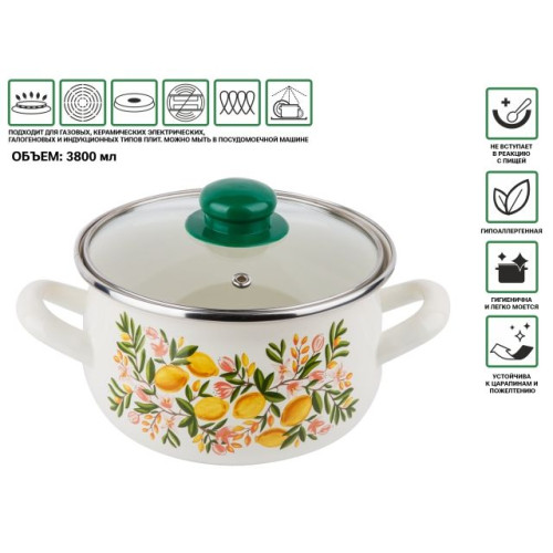 Кастрюля стальная эмалированная, 3.8 л, серия Лимон, PERFECTO LINEA