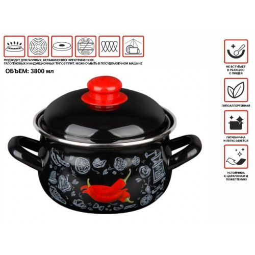 Кастрюля стальная эмалированная, 3.8 л, серия Перчик, PERFECTO LINEA