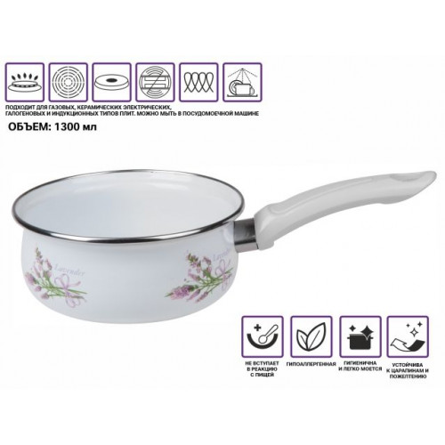 Ковш стальной эмалированный, 1.3 л, серия Лаванда, PERFECTO LINEA