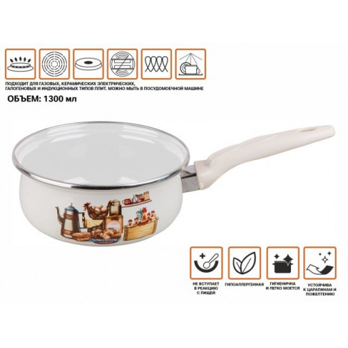 Ковш стальной эмалированный, 1.3 л, серия Традиции, PERFECTO LINEA
