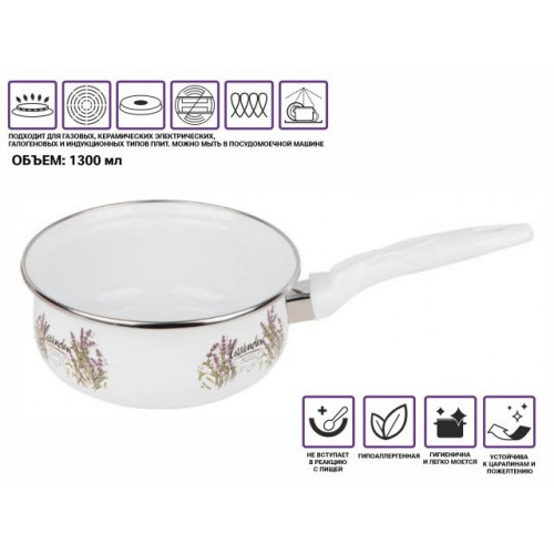 Ковш стальной эмалированный, 1.3 л, серия Цветок лаванды, PERFECTO LINEA