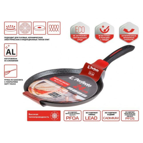Сковорода блинная ф 24х2.0 см, алюм., антиприг. покр., для индукц. плит, серия CHEF, PERFECTO LINEA