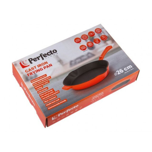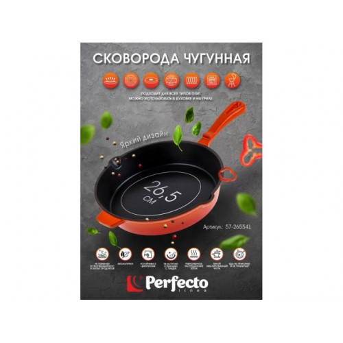Сковорода чугунная ф 26,5х5,4 см с ручкой, PERFECTO LINEA