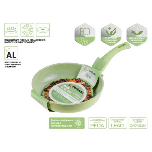 Сковорода ф 22х5.3 см, алюм., антиприг. покр., серия Cook&Fun, зеленая, PERFECTO LINEA