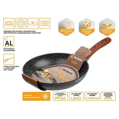 Сковорода ф 24х4.7 см, алюм., антиприг. покр., для индукц. плит, серия Hardy Plus, PERFECTO LINEA